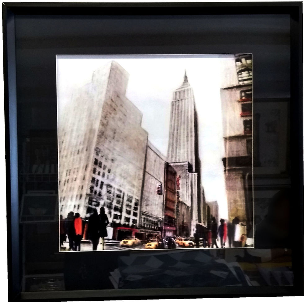 QUADRO CIDADE DE NOVA YORK. MOLDURA CINZA E PASPATUR PRETO. MEDINDO 74X92