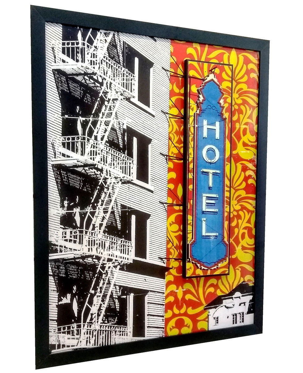 QUADRO CIDADE 3D E MOLDURA PRETA. MEDINDO 84X84